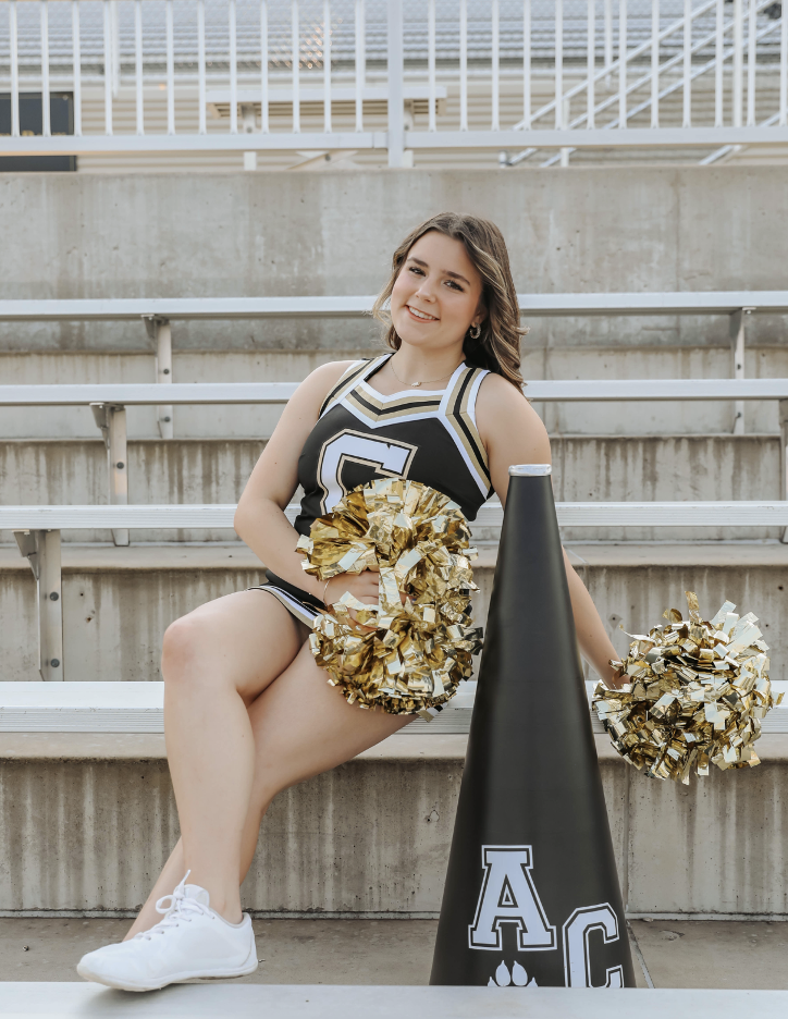 Nicole Crawford has made her mark on the Andover Central cheer program through consistency, leadership, and an unwavering commitment to her teammates. Now a senior, Crawford’s journey through cheer has come full circle as she helps guide the next generation while preparing for her own future.