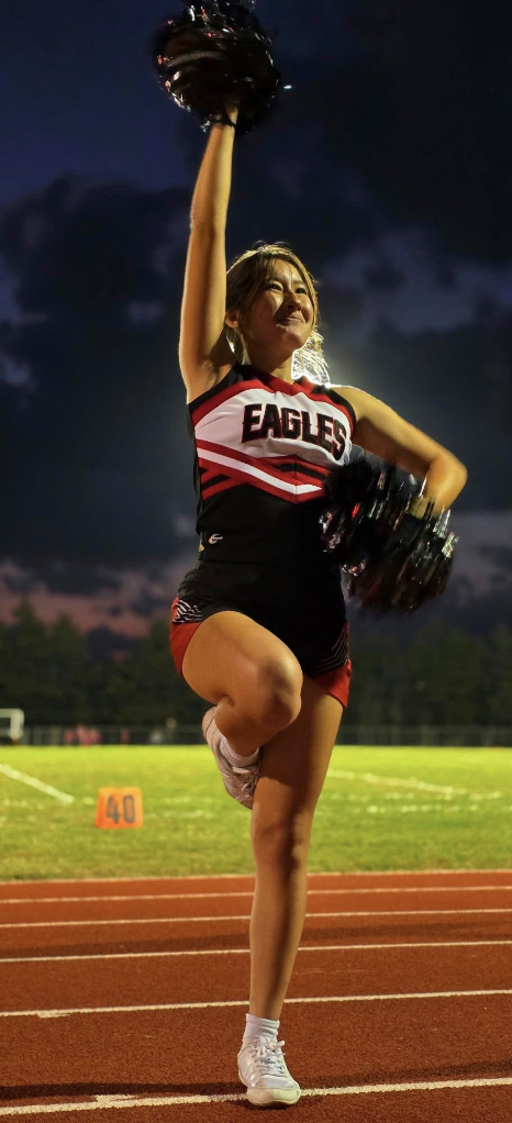 Earley has been involved in cheer for five years, beginning in eighth grade, and over that time she has grown into both a confident performer and a trusted leader.